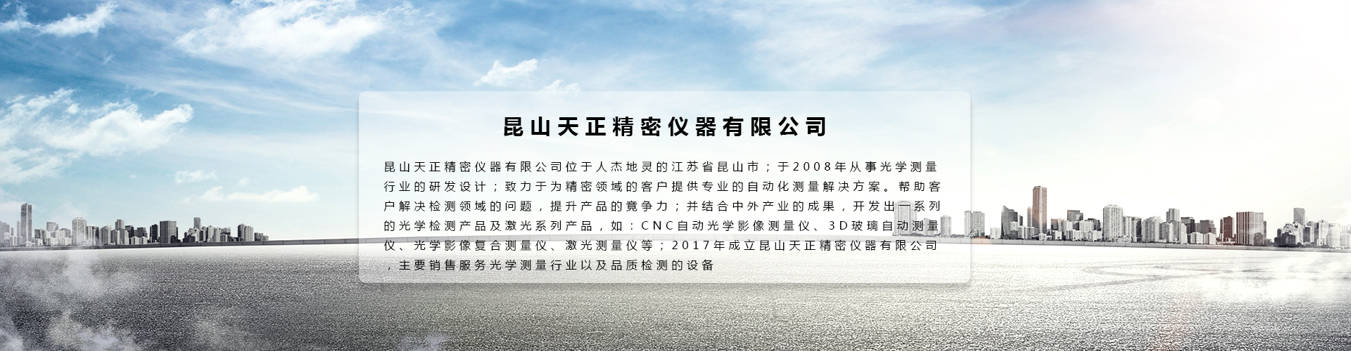 昆山天正精密儀器有限公司位于人杰地靈的江蘇省昆山市;于2008年從事光學測量行業的研發設計;致力于為精密領域的客戶提供專業的自動化測量解決方案。幫助客戶解決檢測領域的問題,提升產品的竟爭力;并結合中外產業的成果,開發出一系列的光學檢測產品及激光系列產品,如:CNC自動光學影像測量儀、3D玻璃自動測量儀、光學影像復合測量儀、激光測量儀等;2017年成立昆山天正精密儀器有限公司,主要銷售服務光學測量行業以及品質檢測的設備; 公司全體員工本著“誠信、質量、技術、創新”的經營理念,以服務客戶為主,向著更高的目標邁進。 .. .